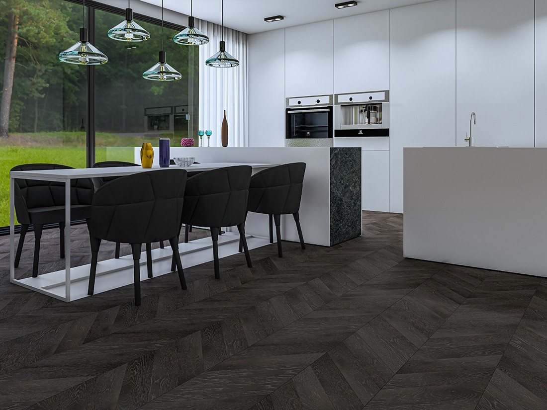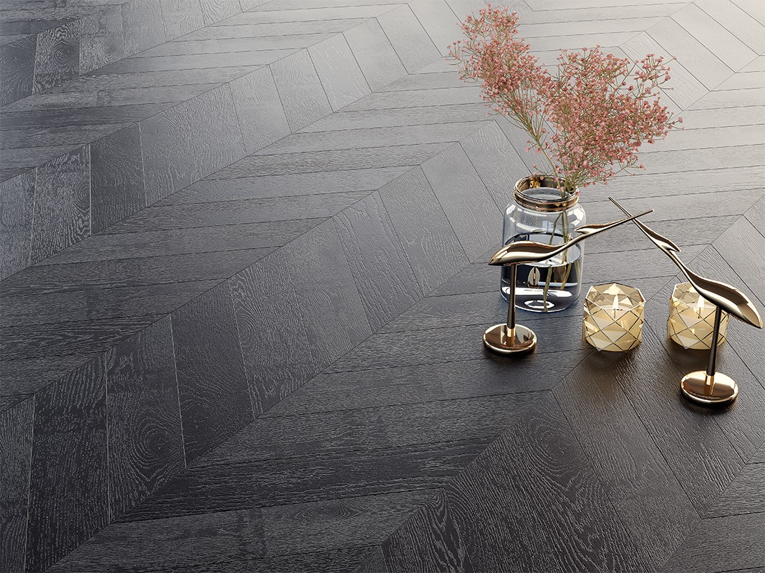 Паркет Ёлка Антрацит является надежным напольным покрытием коллекции Французская ёлка. Брашированная поверхность и полуматовый блеск придает особую привлекательность. является современным материалом для интерьера. Купить паркетную доску Ёлка Антрацит можно у нас от 7650 руб./м2.